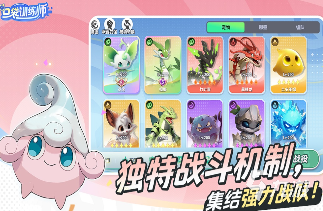 宝可梦爱好者应该会很喜欢口袋训练师这款奇特的手游,奇幻的卡通世界跟随机遭遇小精灵的设定很完善,治愈系的UI呈现跟简化操作也进行结合,呈现出独创的战斗机制相对公平快捷,神奇的精灵球道具帮助大家开启收集宝可梦的旅程,户外探险、宝可梦培养等大量有趣活动期待你来参与,小精灵呈现出的进化状态超级多样提供了新鲜感,组合精灵战队参加主线支线任务更为好玩。