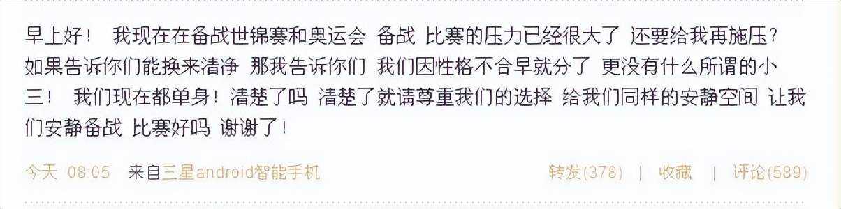 那段时间,他们的恋情被捂得很紧,直到奥运冠军港澳之行时,两人半夜外出被记者撞见,绯闻才第一次曝光。